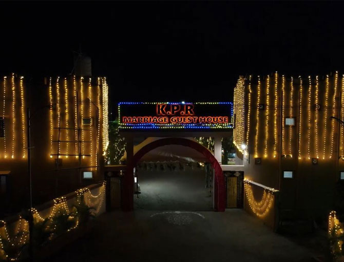 Welcome to KPR Marriage Guest House, where you will discover a realm of extraordinary celebrations and treasured memories. Nestled in the heart of Coimbatore, our distinguished destination wedding hall in Coimbatore presents itself as a premier destination for weddings and special occasions. With deep-rooted connections to this vibrant city, we extend our warm embrace across two exquisite branches: one on Podhanur Road, Chettipalayam, and the other on Kanuvai, Thadagam Road, Coimbatore, Tamil Nadu.